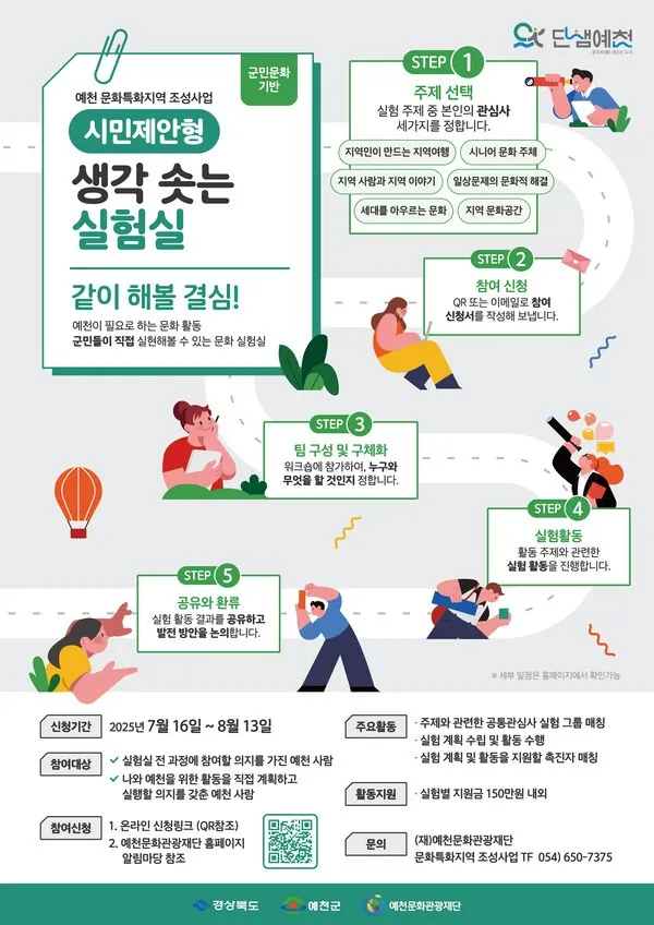 해 제출하면 된다. 자세한 사항은 예천문화관광재단 홈페이지 또는 문화특화지역조성사업 TF에 문의하면 된
